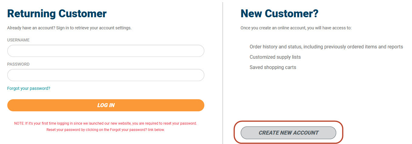 Creating an account allows you to access your Order History, use Saved Carts, create Supply Lists, run Reports and see real-time inventory status based on your shipping address selected. You can also save multiple shipping addresses to make future purchases even easier.