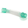 Double flip top cap with seal - opening the first tab on the cap allows for the introduction of a fiber optic bronchoscope while maintaining airway pressure. Opening the second tab allows for suctioning if required.