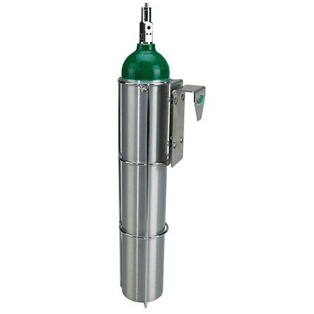 Cylinder Holder, D or E Cylinder, Mounts on 2in Hospital Bed Headboards, Chrome Plated